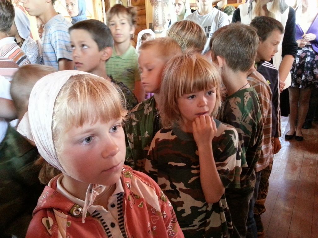 Утреннее короткое правило в храме – обязательное начало каждого дня. А вот в праздник святой равноапостольной княгини Ольги всех ждало особое торжество – туда приехали пять священников, в том числе протоиерей Артемий Владимиров и священник Антоний Сенько – тот самый, что спасал вечером детей от страшилок про белого человека. Утреня завершена, и в храме постепенно появляются первые проснувшиеся. Сестры скромно стоят в уголке, а мимо них течет вихрастый ручей из камуфляжных футболок, штанов, загорелых рук и ног. Ближе к отцу Артемию ручей становится более оформленным, тихим и строгим. К исповеди подходят все: от семилеток до старших подростков.