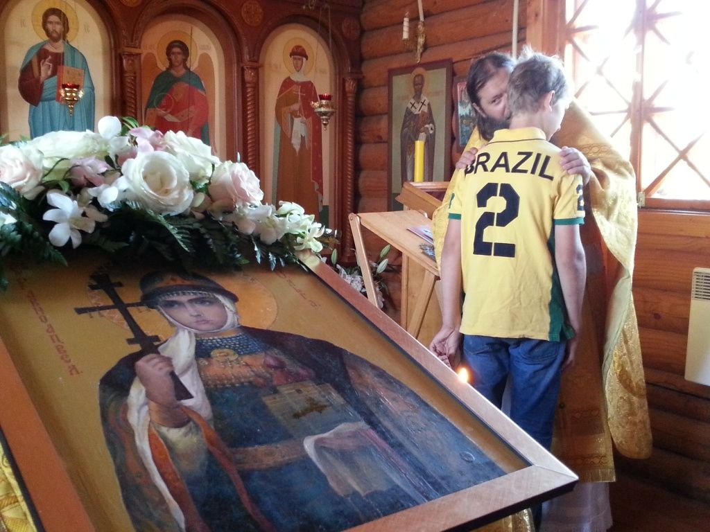 Кроме отца Антония и отца Артемия почтить святую Ольгу и послужить в этот день приехали игумен Сергий (Гайдук) из Иоанно-Богословского мужского монастыря, настоятель Казанского храма села Константиново протоиерей Александр Куропаткин и игумен Лука (Степанов), настоятель Спасо-Преображенского Пронского мужского монастыря. Столько священников в своем небольшом храме дети видели впервые. В церкви – идеальная тишина. Даже не верится, что все четыре взвода здесь, на месте, готовятся к принятию Святого Причастия, чинно и с достоинством подходят к чаше и сосредоточенно потом внимают проповеди отца Артемия.