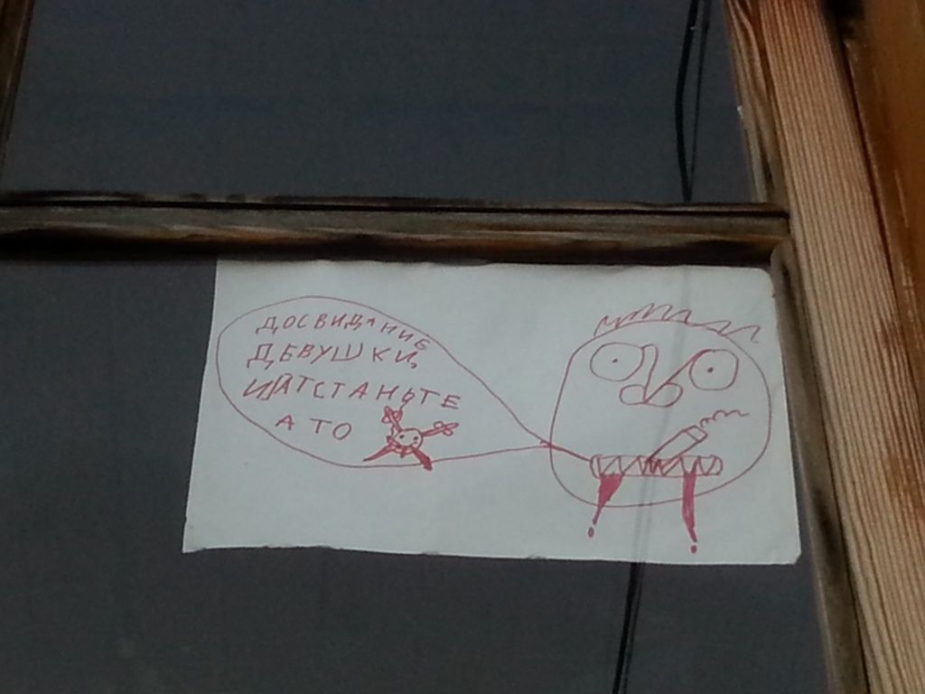 Через несколько минут отец Антоний, захватив все, что нужно, буквально мчался в окружении десятка мальчишек в домик третьего взвода. Суровые воины в камуфляже от восьми до одиннадцати лет, отважно падавшие в крапиву во время атак и отжимавшиеся без единого стона за любую провинность, не смогли «переварить» традиционные лагерные страшилки. В советских пионерских лагерях священников не было, и нам приходилось справляться с черной рукой, зелеными глазами и летающим гробом самостоятельно. А тут – несколько успокаивающих взмахов, летящие в разные стороны капли святой воды и короткая молитва. И все: маленькие воины спят, чему-то улыбаясь во сне, и, как защита уже от реальных нежданных гостей, на их окне колышется надежно приклеенный листок: «Девушки, до свидание и атстаньте!»