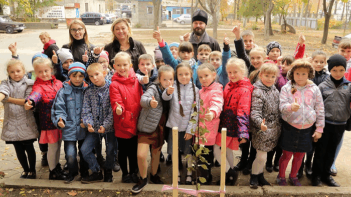 Ученики воскресной школы Горловки посадили сакуру
