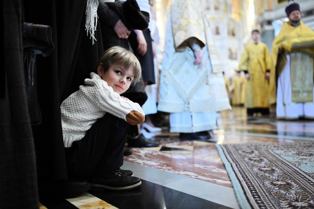 Но вот ещё важный вопрос: как приобщать детей к участию в богослужении, если и сами родители бывают в храме редко, по случаю, и долго на службе не задерживаются? Здесь, конечно, надо напомнить, что «ходить в храм» – это значит не попасть туда иногда на несколько минут, а присутствовать от начала службы и до конца. Понятно, когда у мамы на руках грудничок, она и в самом деле может разве что принести его в храм ко причастию. Но когда ребенок подрастёт, не просто хорошо, но очень даже желательно вместе с ним увеличивать и время пребывания на службе. А уж совсем-совсем хорошо было бы хоть иногда оставлять малыша с кем-то из родственников и самой маме присутствовать в «полном формате» на службе. Хотя бы тогда, когда она готовится к причастию, без которого жизнь христианская невозможна.