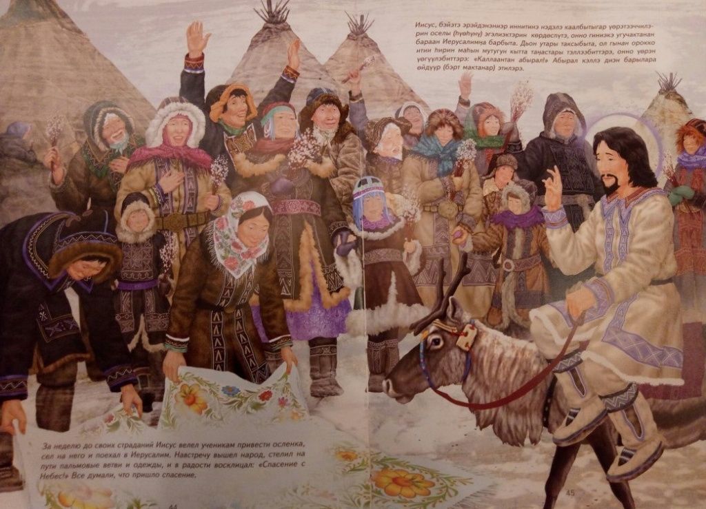 Книга содержит евангельские истории, адаптированные для детского восприятия. Долганский перевод сделан педагогом, деятелем культуры Анной Барболиной. В издании текст приводится параллельно на русском и долганском языках, что сделает его востребованным в смешанных детских коллективах.