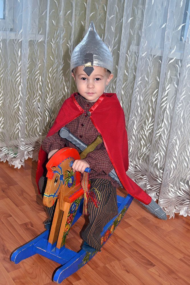Все мальчики хотят быть войнами-победителями, поэтому мы смастерим костюм русского богатыря. Изготовим шлем в технике папье-маше и накидку из красной атласной ткани.