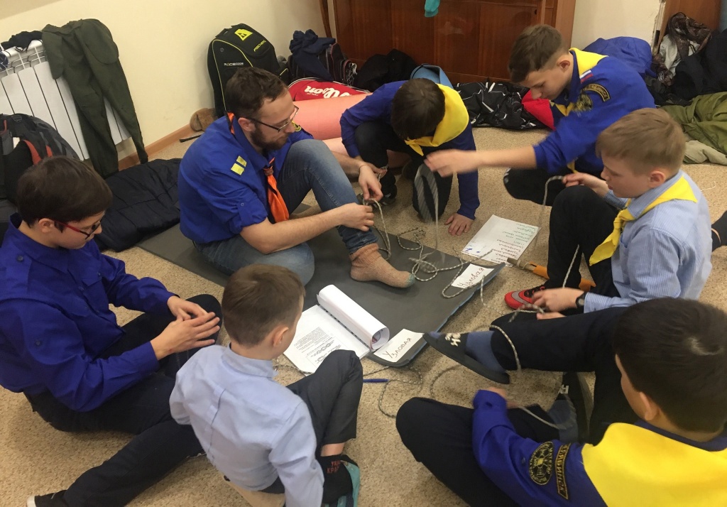 Итак, собрав несколько человек, мы начали. По заветам Би-Пи постарались подойти к занятиям с разных сторон. Основы первой медицинской помощи, ориентирования на местности, кулинарного искусства, вязания узлов – само собой. Мы пробовали и строевую подготовку, и актерское мастерство, и краеведение.
