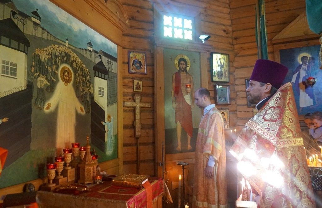 Во время праздничного богослужения все молящиеся стоят перед часовней – внутри очень мало места, и помещаются там только священники и певчие.